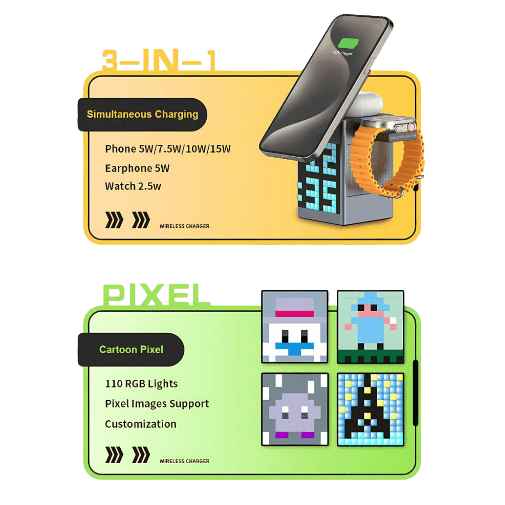 Works with iPhones, AirPods, Apple Watches, and all Qi-enabled devices.