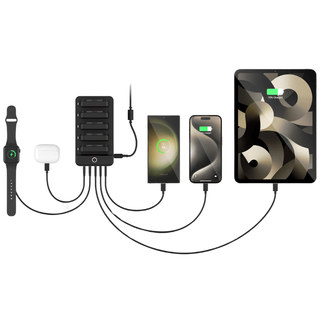 From phones to tablets and earbuds — keep your entire setup running, wire-free or plugged in.