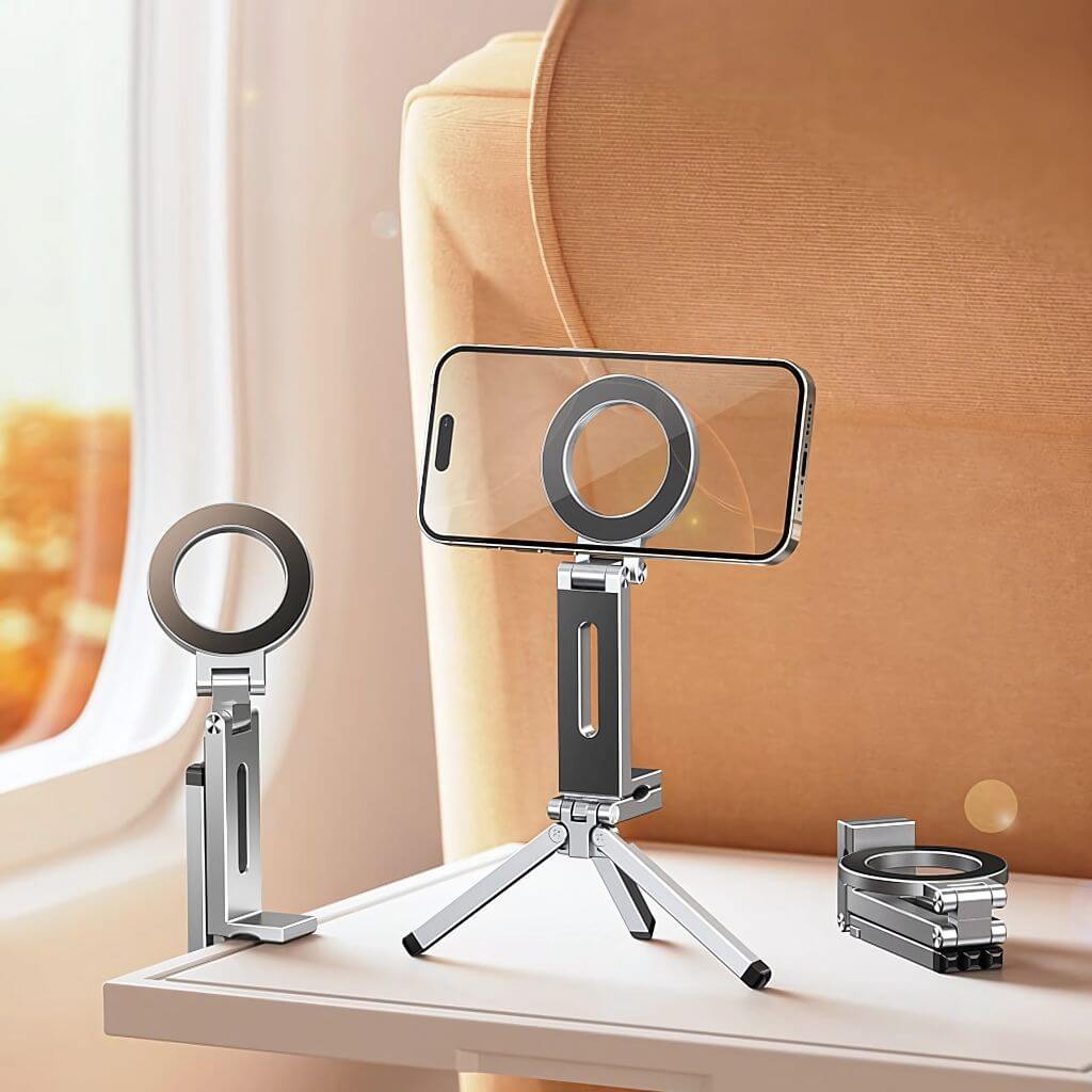 The Magnetic version snaps onto MagSafe-enabled devices or magnetic cases. The Standard version uses a strong clamp to hold any device, even without a magnet.